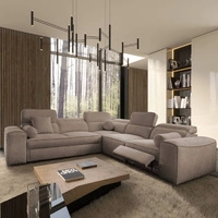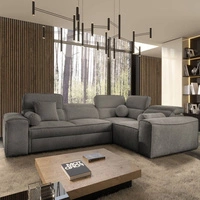 Narożnik z funkcją spania Rava VII lazurowy lewostronny praktyczny i nowoczesny narożnik do salonu z regulowanymi zagłówkami