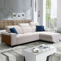 Narożnik z funkcją spania Cetara VI beżowy prawostronny komfortowy i stylowy narożnik rozkładany z przesuwanymi oparciami