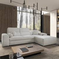 Narożnik z funkcją spania Tesalia VII beżowy prawostronny nowoczesny design komfortowe przesuwane oparcie szuflada w boczku mebla