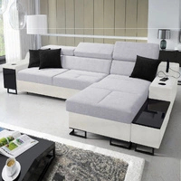 Narożnik z funkcją spania Alcamo III jasny brąz lewostronny funkcjonalny narożnik z szufladą w boczku dwa pojemniki na pościel