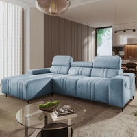 Narożnik z funkcją spania Castel błękitny lewostronny komfortowy i stylowy narożnik rozkładany z pojemnikiem na pościel