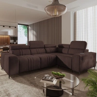 Narożnik z funkcją spania Castel II brązowy prawostronny komfortowy narożnik z regulowanymi zagłówkami pojemnik na pościel