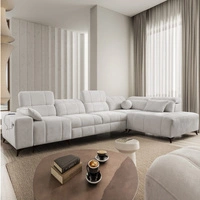 Narożnik z funkcją spania Penejos XI jasny szary prawostronny wygodny narożnik z regulowanymi zagłówkami i dwoma pojemnikami na pościel