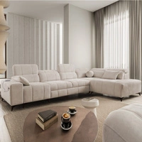 Narożnik z funkcją spania Penejos VII beżowy lewostronny stylowy narożnik z pojemnikiem na pościel wygodne regulowane zagłówki