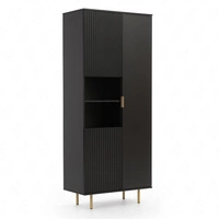 Regał Sula 80 cm czarny elegancki design stabilne wysokie nogi regał z drzwiami do salonu ryflowany front z systemem push to open