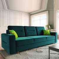 Sofa z funkcją spania Kelly turkusowa stylowa sofa do salonu o prostym designie regulowane zagłówki welurowa tkanina