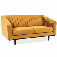 Sofa Asprey żółta prosta i stylowa sofa wpisująca się w każdą aranżację sofa z drewnianymi nogami delikatne przeszycie oparcia