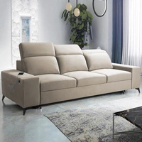 Sofa z funkcją spania Laredo kremowa komfortowa i stylowa sofa do salonu z regulowanymi zagłówkami delikatna welurowa tkanina