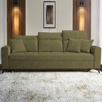 Sofa z funkcją spania Laredo oliwkowa komfortowa i stylowa sofa do salonu z regulowanymi zagłówkami delikatna welurowa tkanina