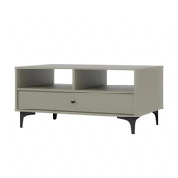 Stolik kawowy Kioto I beżowy z szufladą elegancka konstrukcja wzmocniona metalową podstawą w złotym kolorze subtelny uchwyt