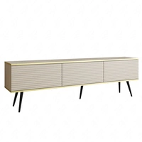 Szafka RTV Luxury 175 cm beżowa elegancki design stylowy ryflowany front korpus zwieńczony złotą listwą czarne metalowe nogi