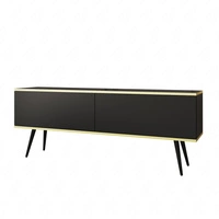 Szafka RTV Luxury 135 cm czarna elegancki design korpus zwieńczony złotą listwą szafka wsparta na czarnych metalowych nogach