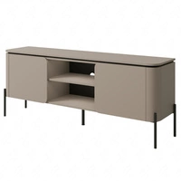 Szafka RTV Belle 163 cm ciemny beżowy elegancka szafka pod telewizor o zaokrąglonym kształcie wsparta na metalowych czarnych nogach