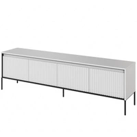 Szafka RTV Trend 193 cm biała nowoczesna szafka pod telewizor z metalową podstawą ryflowane fronty subtelne oświetlenie LED