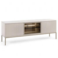 Szafka RTV Amma 154 cm beżowa elegancka forma mebla w nowoczesnym stylu gustowny ryflowany front bezpieczne szkło hartowane