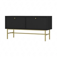Szafka RTV Kioto III 121 cm czarny grafit elegancka szafka z drzwiami otwieranymi do dołu złoty metalowy stelaż