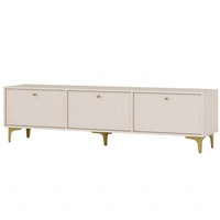 Szafka RTV Luxury 175 cm beżowa elegancki design korpus zwieńczony złotą listwą szafka wsparta na złotych metalowych nogach
