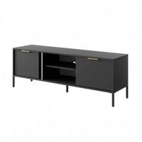 Szafka RTV Nea 180 cm czarna / czarny połysk z możliwością powieszenia i półkami stylowy design wpisujący się w każde wnętrze