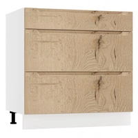Szafka kuchenna stojąca z szufladami Zova D80 S/3 biały / dąb halifax pojemna szafka odporna na uszkodzenia frezowane uchwyty