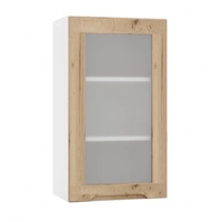 Szafka kuchenna wisząca Zova WS40 biały / dąb halifax szafka do kuchni z przeszkleniem odporna na uszkodzenia frezowany uchwyt