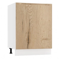Szafka kuchenna stojąca z półką Zova D60 biały / dąb halifax funkcjonalna szafka do kuchni odporna na uszkodzenia frezowany uchwyt