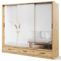 Szafa przesuwna z lustrem Arti 250 cm dąb artisan funkcjonalna szafa do przedpokoju z szufladami duże lustra podkreśla oświetlenie LED