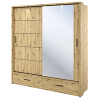 Szafa przesuwna z lustrem Arti 200 cm dąb artisan estetycznie wykonana szafa do sypialni wzbogacona oświetleniem LED pojemne szuflady