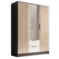 Szafa z lustrem Aspen 155 cm beżowa / czarne lamele nowoczesny design mebla drzwi szafy ozdobione lamelami