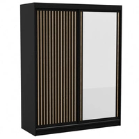 Szafa przesuwna z lustrem Delia 160 cm czarna stylowa szafa z ozdobnymi lamelami w kolorze drewna wpasuje się do każdej aranżacji