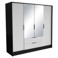 Szafa z lustrem Norel 200 cm czarny / biały stylowa szafa o nowoczesnym designie z ryflowanymi frontami i pojemnymi szufladami