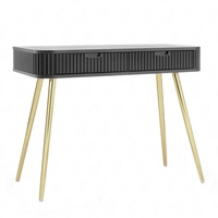 Konsola Zoya czarna z szufladami stylowa oraz funkcjonalna toaletka zaoblony kształt bryły ryflowane fronty szuflad złote nogi
