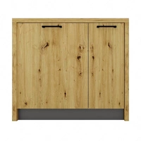 Wyspa kuchenna Clara 97 cm dąb artisan / szary popiel funkcjonalny mebel kuchenny z szafkami odporny na działanie wilgoci czarne uchwyty