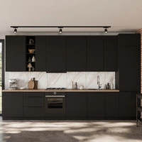 Zestaw mebli kuchennych narożny Black 310x250 cm metalowe uchwyty krawędziowe szafki doskonale prezentują się w nowoczesnych wnętrzach