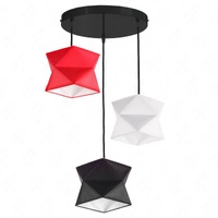 Lampa wisząca potrójna Quasar designerska lampa sufitowa do salonu lub sypialni z kolorowymi abażurami i czarną rozetą sufitową