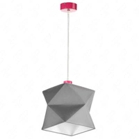 Lampa wisząca Quasar 20 cm szara / różowa designerska lampa sufitowa do salonu z bawełnianym abażurem i metalową podstawą