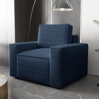 Fotel Fogu niebieski nowoczesny design wygodny fotel do salonu sztruksowa tkanina o wyrazistych prążkach szerokie podłokietniki