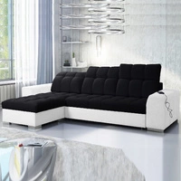Narożnik z funkcją spania Luigi czarny / biały lewostronny narożnik z dwoma pojemnikami na pościel tkanina o ciekawej strukturze