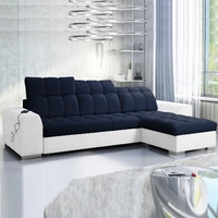 Narożnik z funkcją spania Luigi granatowy / biały prawostronny narożnik z dwoma pojemnikami na pościel tkanina o ciekawej strukturze