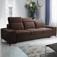 Sofa z funkcją spania Kelly brązowa stylowa sofa do salonu o prostym designie regulowane zagłówki welurowa tkanina