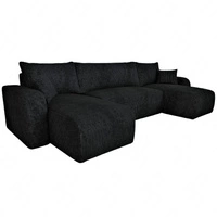 Narożnik z funkcją spania Fiesta U XL czarny elegancki narożnik do salonu z pojemnikiem na pościel pluszowa tkanina