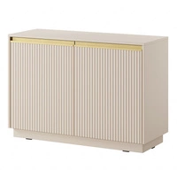 Komoda Amma 154 cm beżowa nietuzinkowy design przeszklony front komody do salonu z systemem push to open dekoracyjne lamele