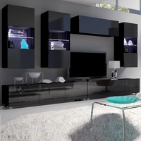 Zestaw mebli Golden antracytowy nowoczesny design meblościanka do salonu lub pokoju dziennego złoty uchwyt krawędziowy