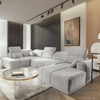 Narożnik z funkcją spania Castel IV szary popiel lewostronny stylowy narożnik z pojemnikami na pościel i regulowanymi zagłówkami