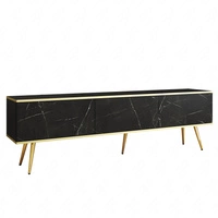 Szafka RTV Luxury 175 cm czarny marmur elegancki design korpus zwieńczony złotą listwą szafka wsparta na złotych metalowych nogach