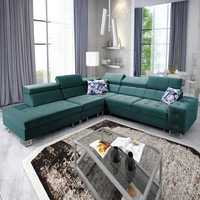 Narożnik z funkcją spania Hampton II morski prawostronny stylowy narożnik rozkładany miękka tkanina obiciowa typu velvet