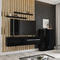 Meblościanka Almiros czarna / czarny połysk nowoczesny design system otwierania szuflad push to open meblościanka do salonu z komodą