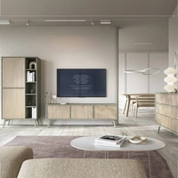 Zestaw mebli Mono beżowy minimalistyczny design meblościanka do salonu lub pokoju dziennego stylowy złoty uchwyt