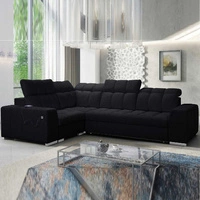 Narożnik z funkcją spania Luigi II czarny lewostronny komfort podczas codziennego wypoczynku narożnik z pojemnikiem na pościel