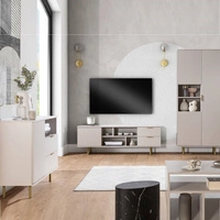 Zestaw mebli Mono beżowy minimalistyczny design meblościanka do salonu lub pokoju dziennego stylowy złoty uchwyt