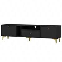 Szafka RTV Kioto I 180 cm czarny grafit elegancka szafka w ponadczasowej kolorystyce subtelne uchwyty w kolorze złotym